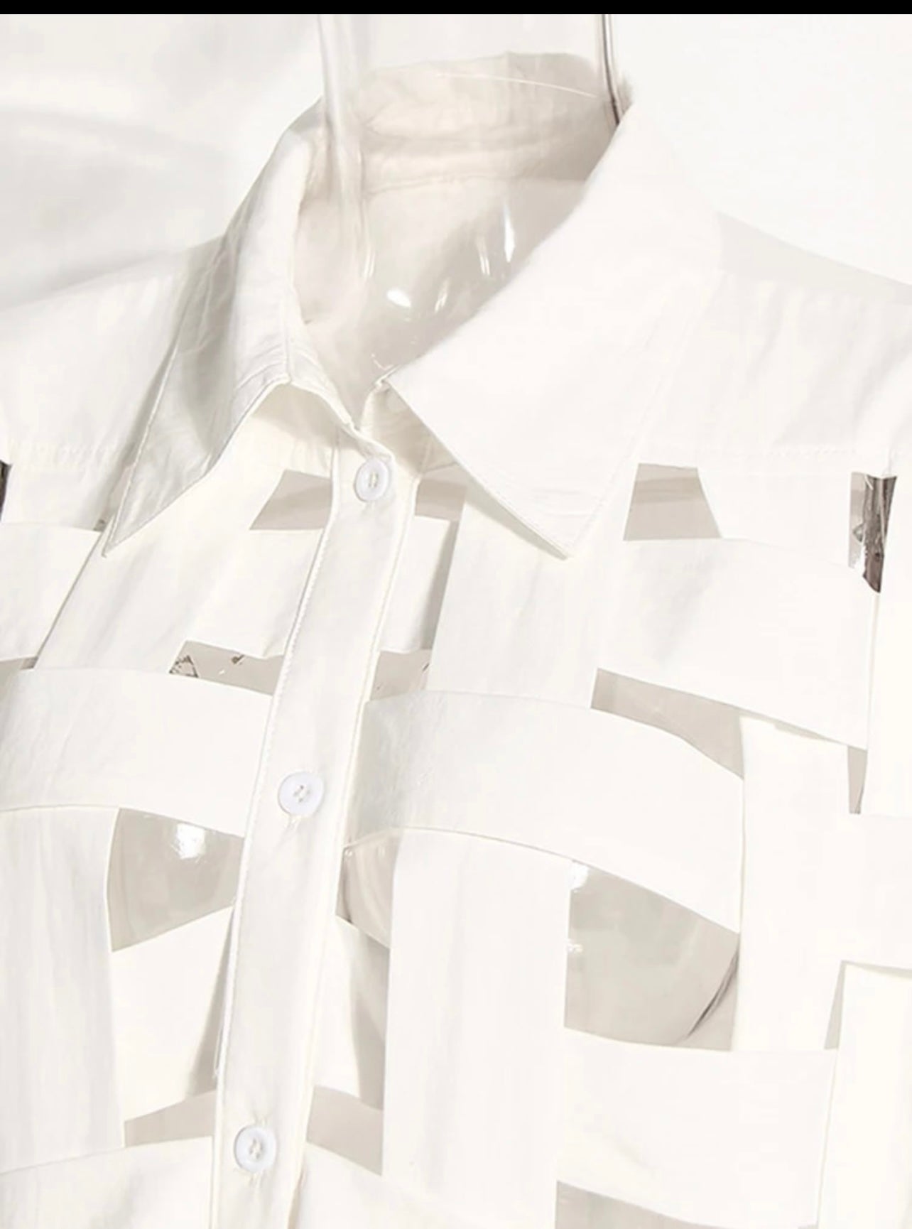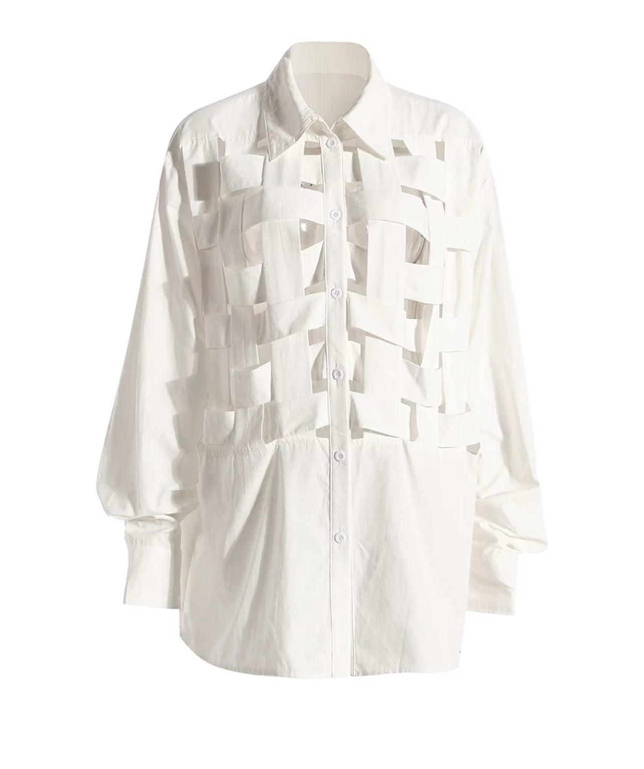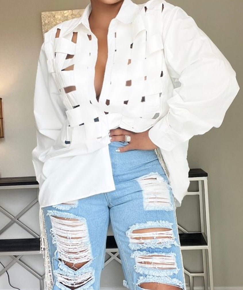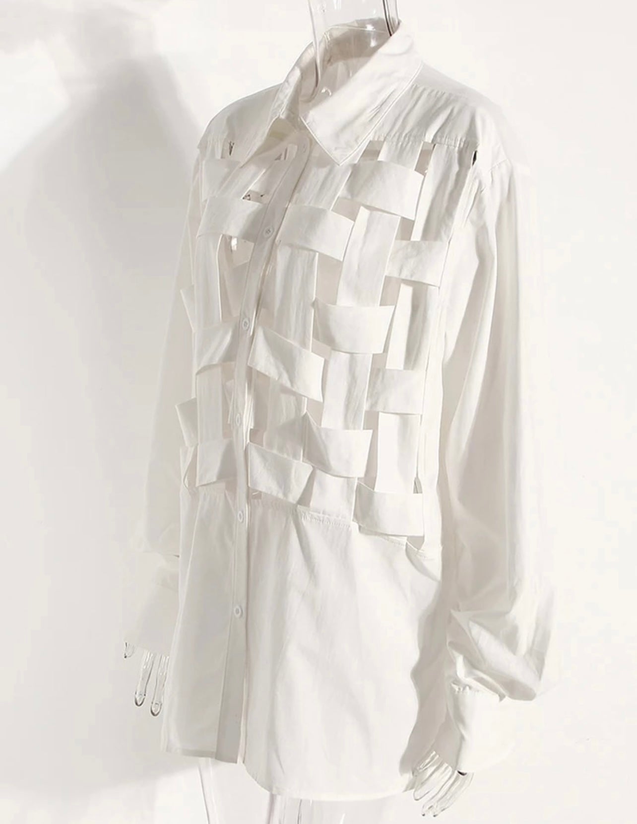 Reminiscent of the bottega Venetta bags this top was inspired by the cross weave pattern