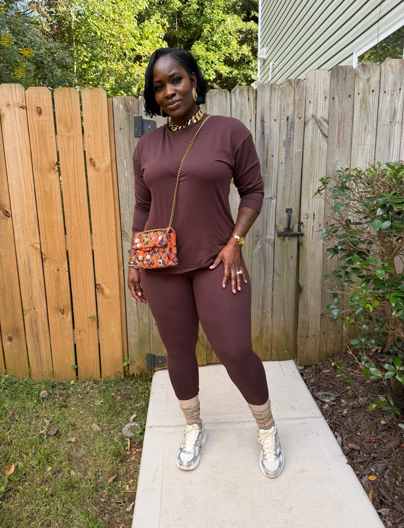 brushed round neck long sleeve basic Tshirt top and leggings set
