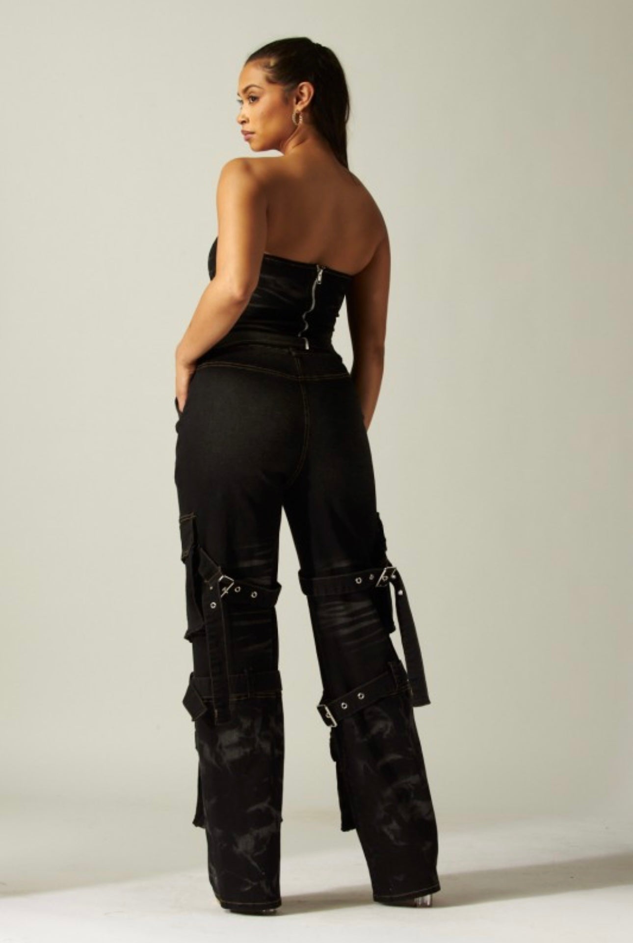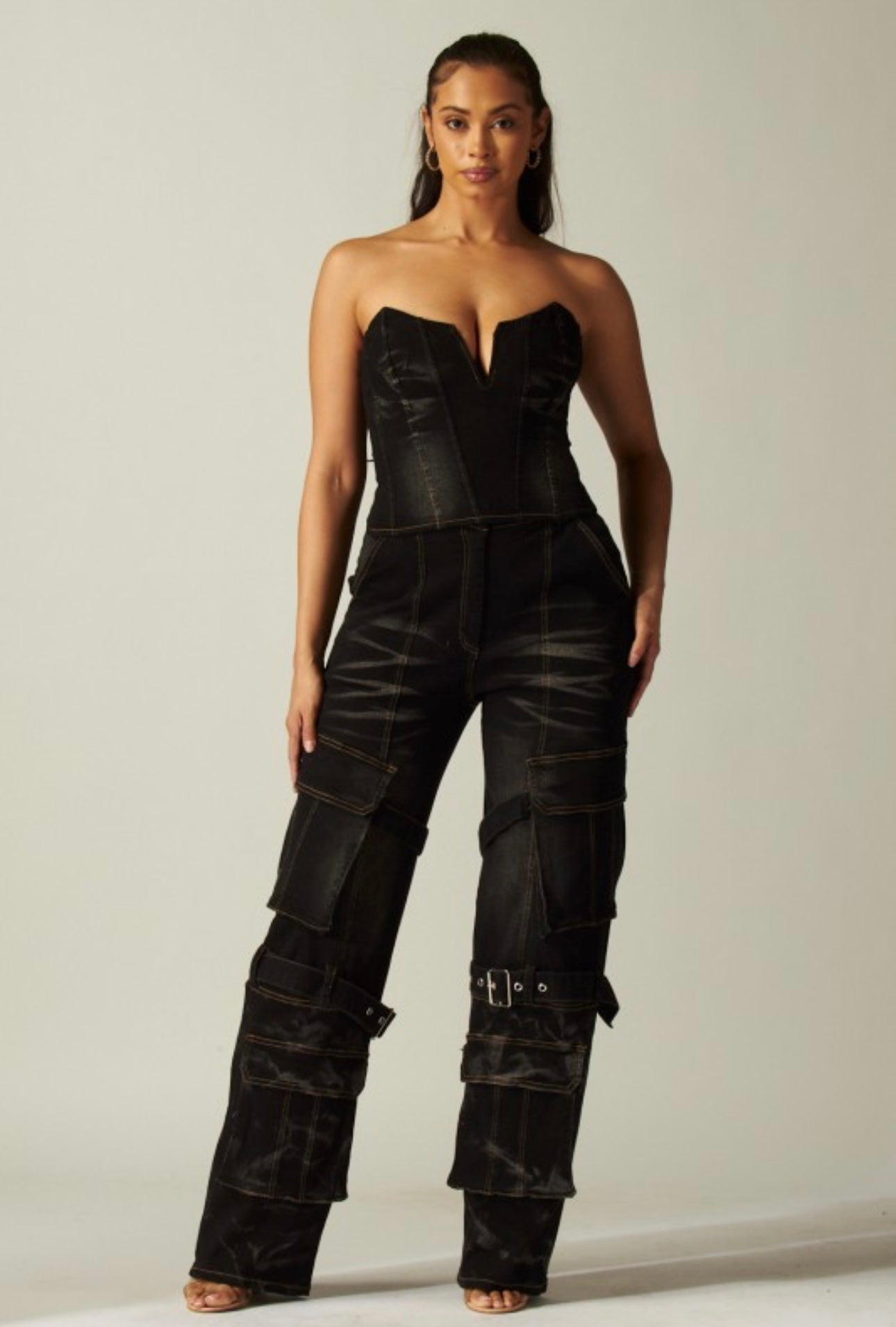 Strapless corset style romper with a flattering plunge shape for my fly girls