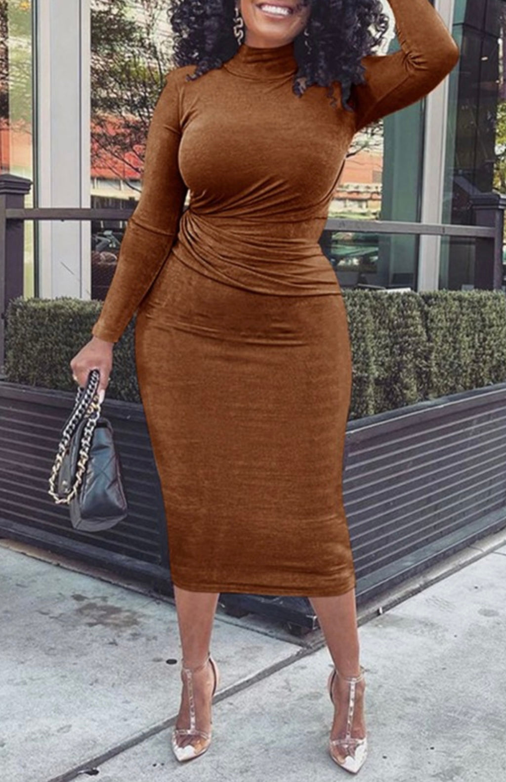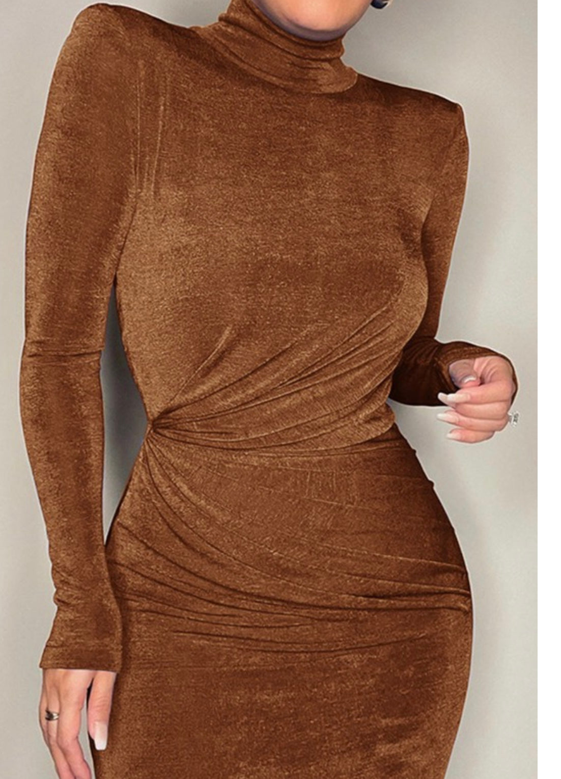 Metallic Shoulder padded ruched body con dress